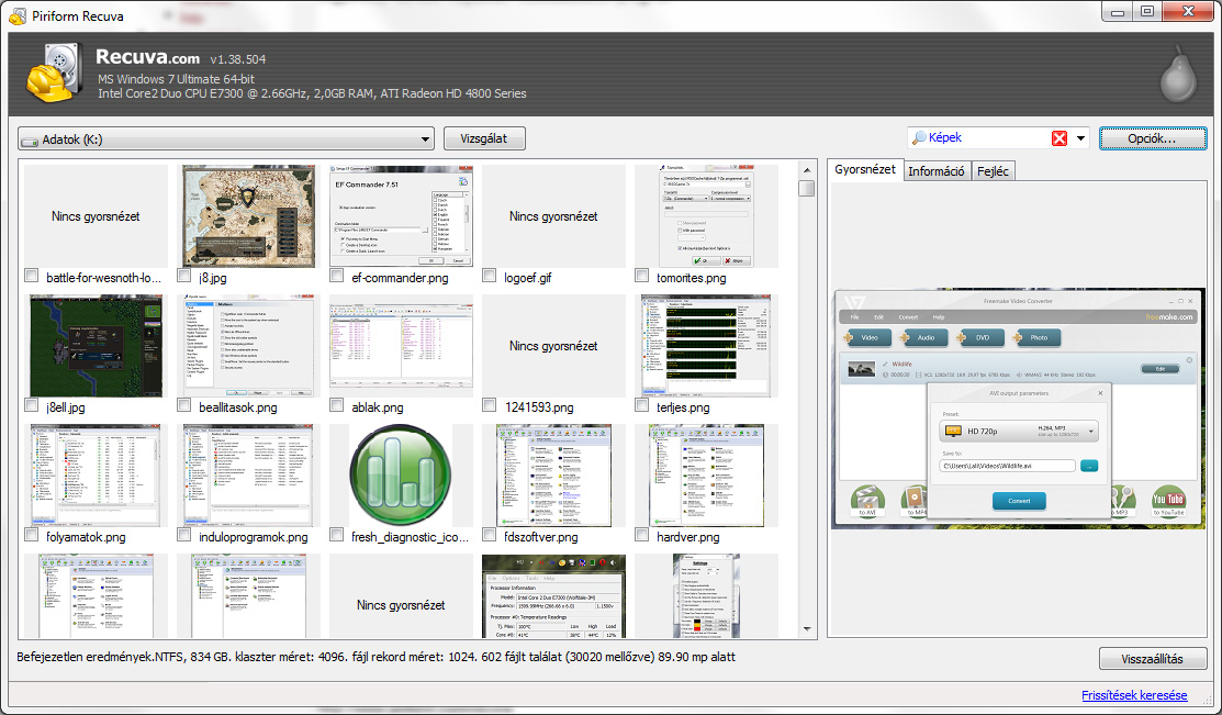 Ha a létszükséglettel megegyező fontosságú fájlokat veszítettél el, akkor javasoljuk, hogy ne egy ingyenes program hordozható változatára hagyatkozz. Bármilyen ügyes is a Recuva, csodákat nem szabad várni tőle. Igazán okos fájlkereső algoritmussal rendelkezik, de szakma szerinti adatmentőket sosem fog lekörözni. Ha ilyen adatokat veszítettél el és nem jártál sikerrel más megoldással, akkor javasoljuk, hogy fordulj szakemberhez.
