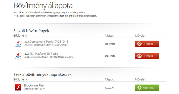 A Mozilla plugin ellenőrző oldala hasznos a frissítések beszerzésében. Működik Google Chrome alatt is!