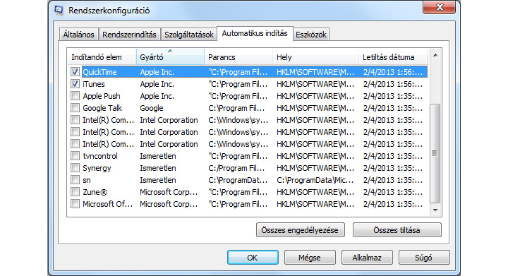 Ha nyugodtan elmehetsz lefőzni magadnak egy csésze kávét, ameddig a számítógéped használatra alkalmas állapotba kerül, akkor most figyelmesen olvasd az alábbi sorokat. Az induláskor a BIOS kezdőképernyője után a Windows töltőképernyője fogad, majd az asztalod, de ameddig tényleges munkához láthatsz, néha perceket is kell várni. Onnan tudhatod ezt, hogy a számítógép HDD lámpája (ami általában pirosan világít) veszettül villog. Amikor alább hagy, akkor állhatsz neki a munkának. A Windows indításakor betöltődő segédprogramok, kiegészítők és egyebek okozzák ezt, jelentősen lelassítva a bekapcsolást. A problémádra gyógyír lehet a korábban említett CCleaner, amellyel a indítási listát szerkesztheted. Másik megoldás az msconfig nevű beépített Windows-alkalmazás. A Start menüben, a Futtatás mezőbe írd: msconfig.exe – az Automatikus indítás fül alatt a nem kívánt programok mellől szedd ki a pipákat. A géped ezután akár feleolyan gyorsan is bekapcsolhat.