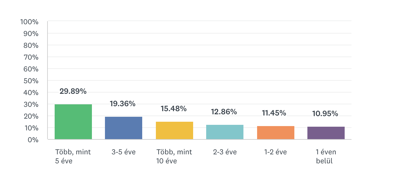 A Laptopszaki.hu felmérése szerint a válaszadók megközelítőleg 30 százaléka több mint 5 éve, 15 százaléka pedig több mint 10 éve vásárolta a laptopját. Mindössze minden tízedik kitöltő vett ilyen eszközt az elmúlt egy évben, és körülbelül ugyanennyien 1-2 éve jutottak hozzá új gépükhöz.