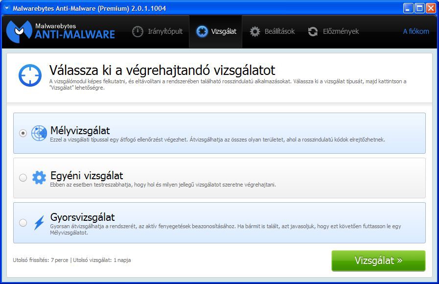 A Malwarebytes-t egy-két hetente elég futtatnod, és szerencsére tud magyarul is