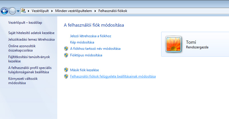 Jelenleg egy felhasználói fiókod van? Ideje egy újat létrehozni. Mindenképpen rendszergazdai jogosultságokkal rendelkező felhasználót hozz létre, amivel tudsz vírusirtót futtatni és egyéb teendőket elvégezni, ha beütne a krach.