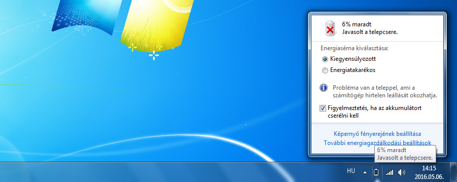 A másik gyakori jelzés, ha az operációs rendszered értesít, hogy “javasolt a telep cseréje”.