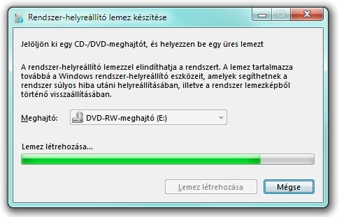Rendszer-helyreállító lemez készítése: