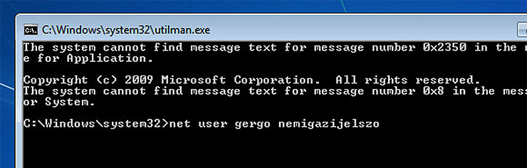 A fenti fájlmozgatással a kisegítő lehetőségek programfájlt cseréltük ki a parancssort indító fájlra. Így, ha rákattintasz a parancssor fog megjelenni.