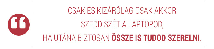 Minden esetben azt javasoljuk, hogy csak és kizárólag csak akkor állj neki a laptop tisztításának házilag, ha teljes mértékben biztos vagy benne, hogy a szétszerelt laptopot össze is tudod szerelni.