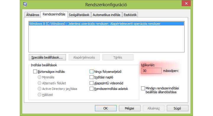 A legutolsó lépés újfent az msconfig-hoz vezet minket: a második fülön, amely a „Rendszerindítás” névre hallgat a Windows Boot Manager beállításait piszkálhatjuk némileg meg.