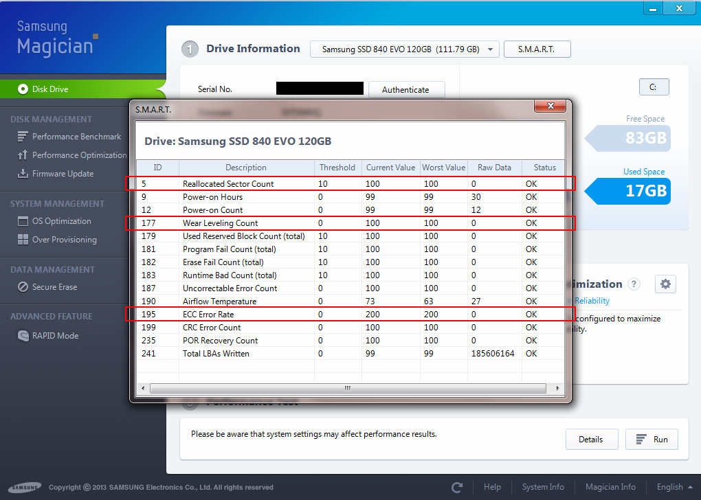 A merevlemez (vagy SSD) állapotát a S.M.A.R.T. tárolja, melyben olyan adatok szerepelnek, mint például hányszor lett elindítva a lemez, milyen mennyiségű adatot írtunk rá vagy éppen vizsgált-e már meg szektorokat a lemez hibák után kutatva és ha igen, hány ilyen szektort talált.