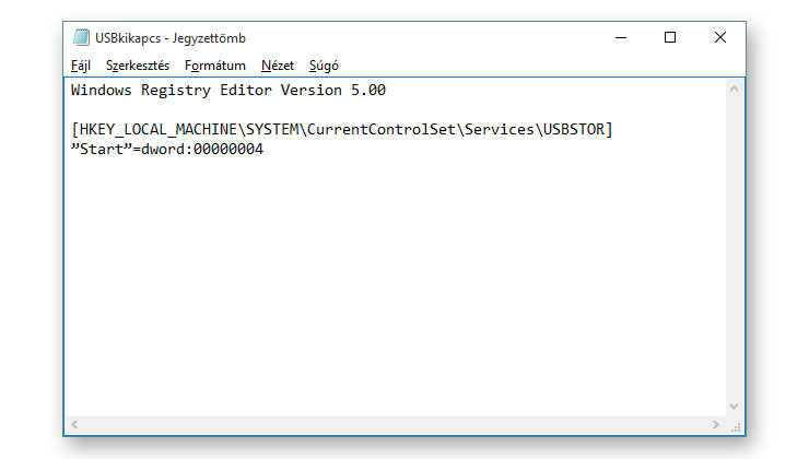 A tömörített mappán belül található USBkikapcs.reg futtatásával kikapcsolhatod az USB csatlakozókat, az USBbekapcs.reg futtatásával pedig bekapcsolhatod azokat. A módosítás nem érinti azokat az USB meghajtókat, amelyek már csatlakoztatva vannak a laptophoz. Nem mindegyik Windows verzión működik a módosítás, illetve egyes rendszereken újraindítás szükséges.
