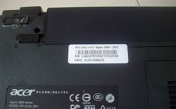 A laptop alján (vagy az akkumulátor alatt), jól megkülönböztethető matricán található a gyártási széria szám