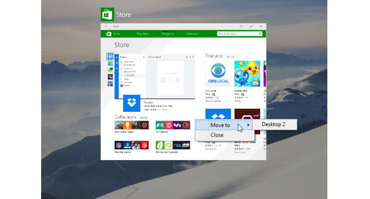 A Windows 10 bevezette a virtuális asztalok fogalmát, megkönnyítve ezzel a több ablakban dolgozók életét. A virtuális asztalok között az Windows gomb + Tab kombinációval válthatsz, míg az Alt + Tab megmarad a hagyományos programok közötti váltásra. A megnyitott ablakokat könnyedén tudod mozgatni egyik asztalról a másikra, elegendő csupán a keresősáv melletti asztal váltót megnyitnod (két egymásra helyzett papírlap), majd jobb kattintanod az átvinni kívánt programon és Move to > Desktop 2-t választanod.