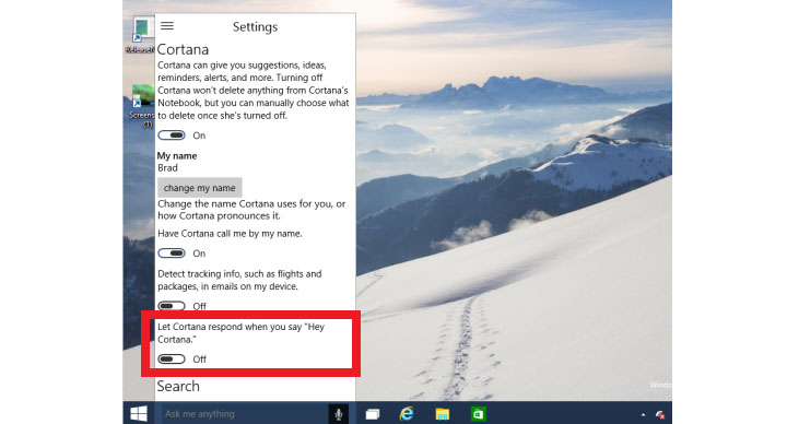 A beállításokban a „Let Cortana respond when you say Hey Cortana” opció alatt bökd át Off-ról On-ra a csúszkát. Innentől kezdve bármikor azt mondod, Hey Cortana, a keresősáv felugrik és várja a kérdésed. Mindezt anélkül, hogy hozzányúltál volna az billentyűkhöz vagy a touchpad-hez.
