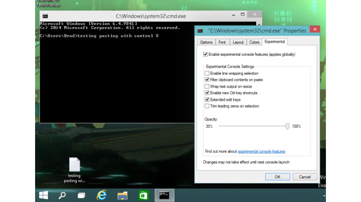 A Windows 10-ben végre tudunk Ctrl+C-vel másolni és Ctrl+V-vel beilleszteni a parancssorba. Az aktiváláshoz nyisd meg a parancssort, jobb kattintsál a fejlécen, majd válaszd a Properties opciót. Itt az Experimental fülön találod a kísérleti opciókat. A gyors másolás és beillesztés engedélyezéséhez az Enable new Ctrl key shortcuts mellé tégy pipát.